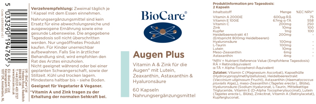 - Augen Plus kann ebenfalls als einen Komplex Breitspektrumantioxidantien verwendet werden.