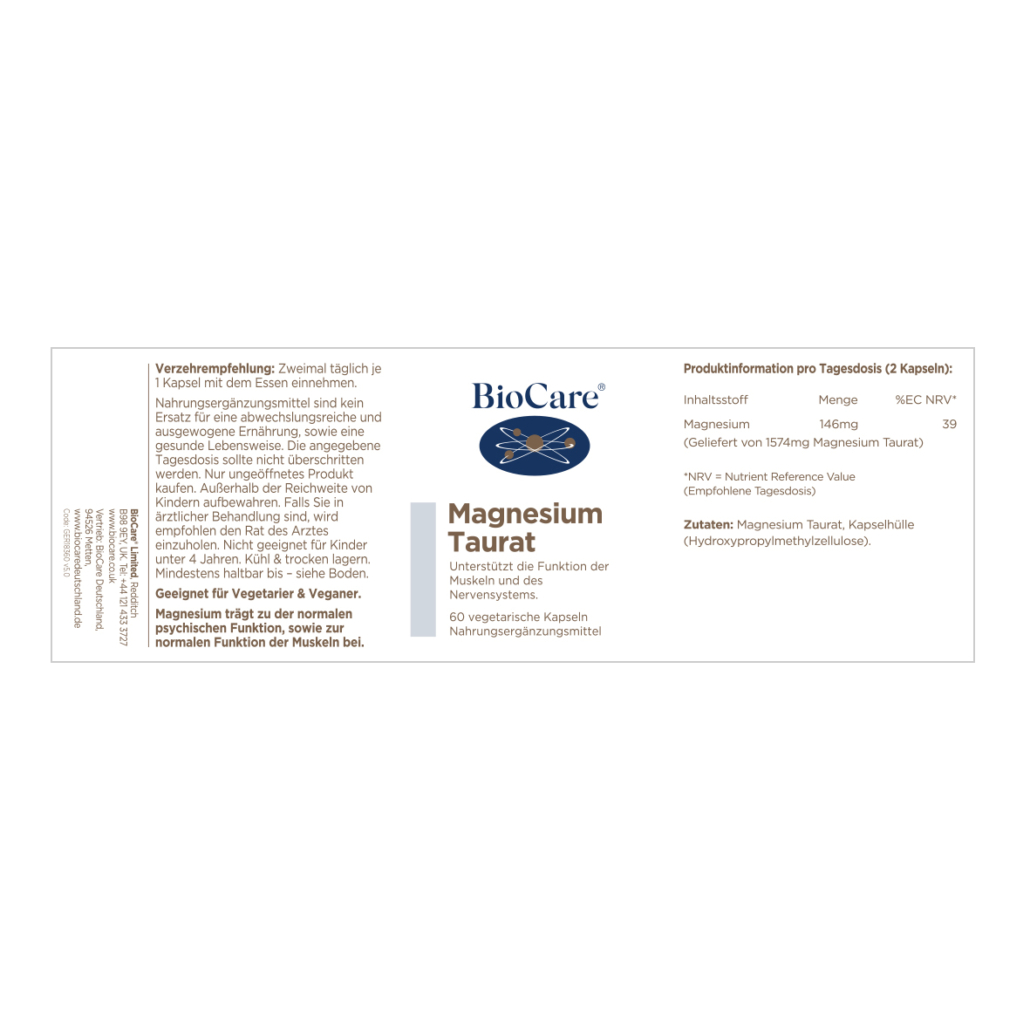Magnesium Taurat verbindet Magnesium mit der Aminosäure L-Taurin. Magnesium trägt zum Energiehaushalt bei sowie der normalen Funktion der Muskeln und des Nervensystems und reduziert Müdigkeit & Erschöpfung.