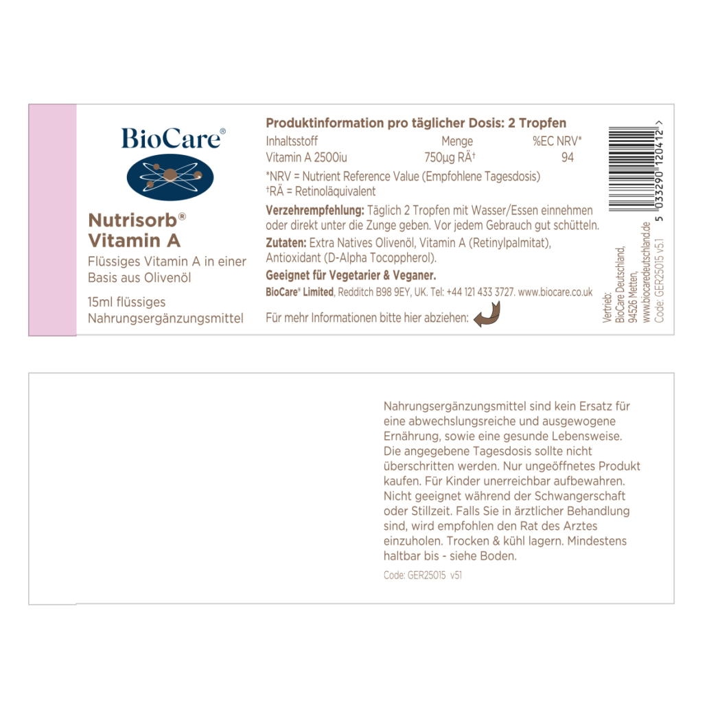 - Optimale Unterstützung – einfach absorbierbare flüssige Form 750mcg (2500iE) Vitamin A pro empfohlener Tagesdosis.