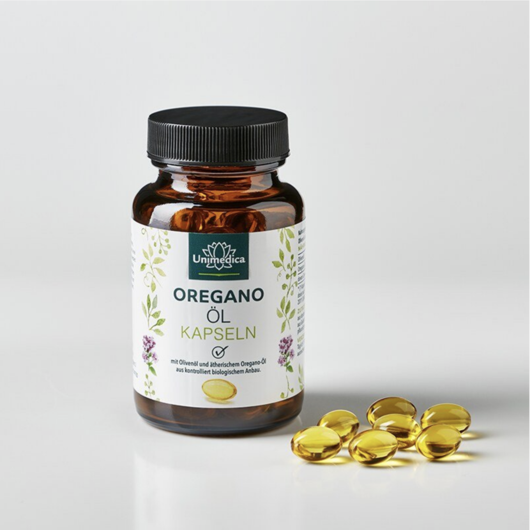Im ätherischen Oregano-Öl sind die wertvollen Inhaltsstoffe und das typische Aroma konzentriert. Mit Olivenöl vereint bietet ätherisches Oregano-Öl mit seinem hohen Carvacrol-Gehalt in den Oregano-Öl Kapseln von Unimedica viele Vorteile des mediterranen Lebensstils einfach zum Einnehmen.