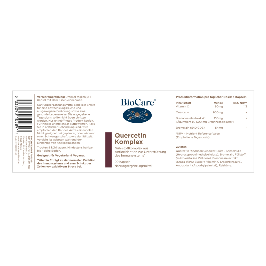 Quercetin (Sophorae japonica Blüte), Kapselhülle (Hydroxypropylmethylzellulose), Bromelain, Füllstoff (mikrokristalline Zellulose), Brennnesselextrakt (Urtica dioica Blätter), Vitamin C (Ascorbinsäure), Antioxidant (Ascorbylpalmitat), Reishülse.
