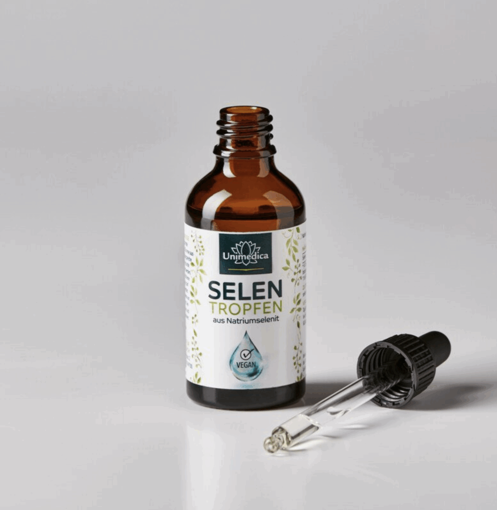 Selen ist ein sehr wichtiges Spurenelement für unseren Körper, vor allem für die Schilddrüse. Selen schützt zudem die Zellen vor oxidativem Stress, unterstützt das Immunsystem und kräftigt Haare und Nägel. Selen Tropfen von Unimedica decken den empfohlenen Tagesbedarf an Selen zu 364 %. Selen Tropfen von Unimedica enthalten die anorganische Form von Selen: Natriumselenit.