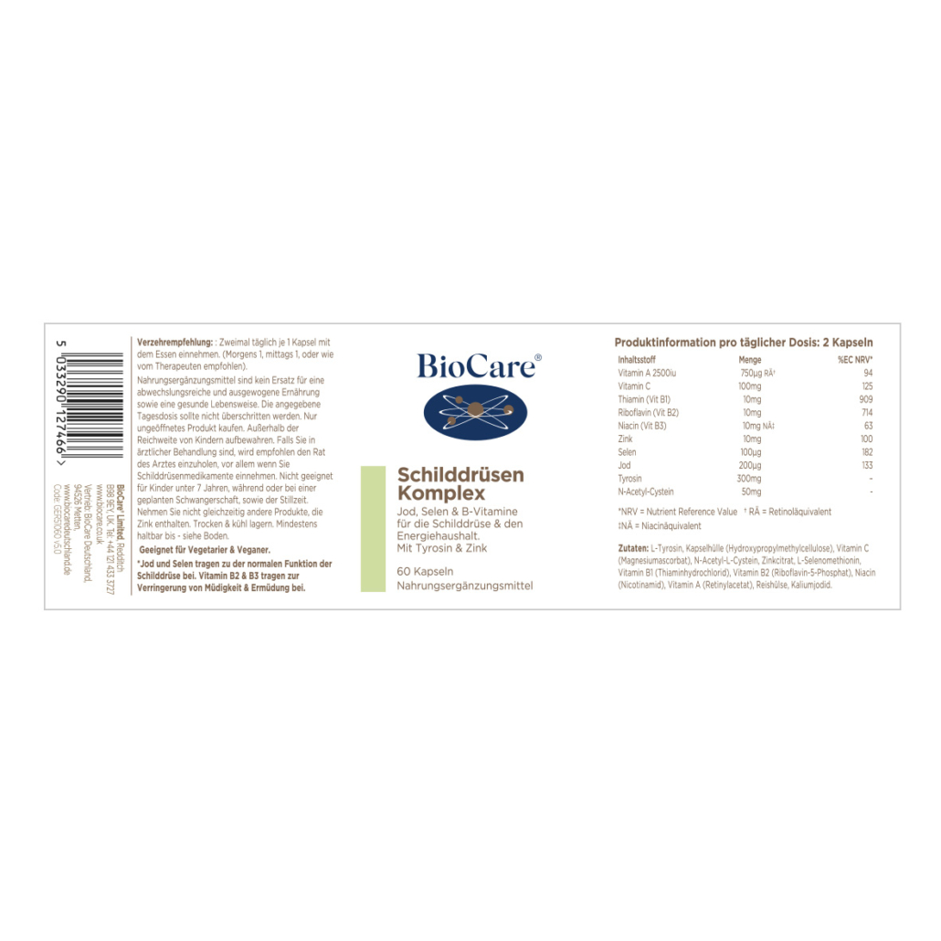 Knotentang Extrakt (Ascophyllum nodosum Seetang), Kapselhülle (Hydroxypropylmethylzellulose), Vitamin C (Calciumascorbat), Magnesiumgluconat, Füllstoff (Zellulose), Siberisches Ginsengpulver(Eleutherococcus senticosus Wurzel), Niacin (Nicotinamid), Lakritzpulver (Glycyrrhizia glaba Wurzel), L-Tyrosin, L-Glycin, Antibackmittel (Magnesiumstearat), Thiamin (Thiaminhydrochlorid), L-Glutamin, modifizierte Tapiokastärke, Kartoffel-Maltodextrin, Dicalciumphosphat, Vitamin A (Retinylpalmitat), Cellulase, Lipase, Protease, Amylase, L-Selenomethionin, Antioxidantien (natürliche gemischte Tocopherole), Sonnenblumenöl.